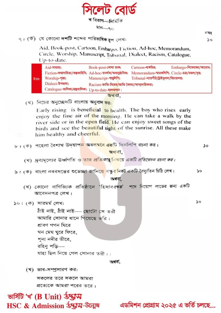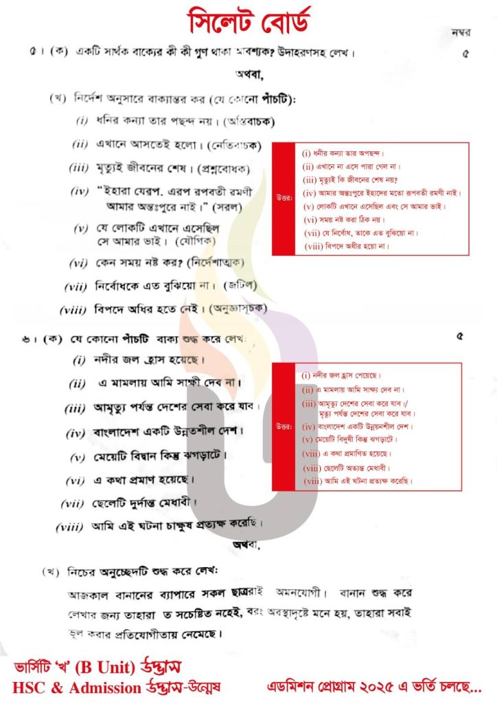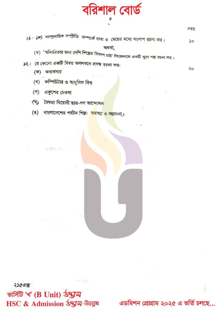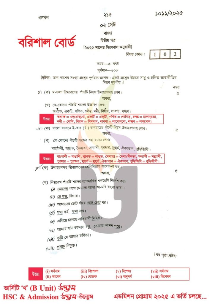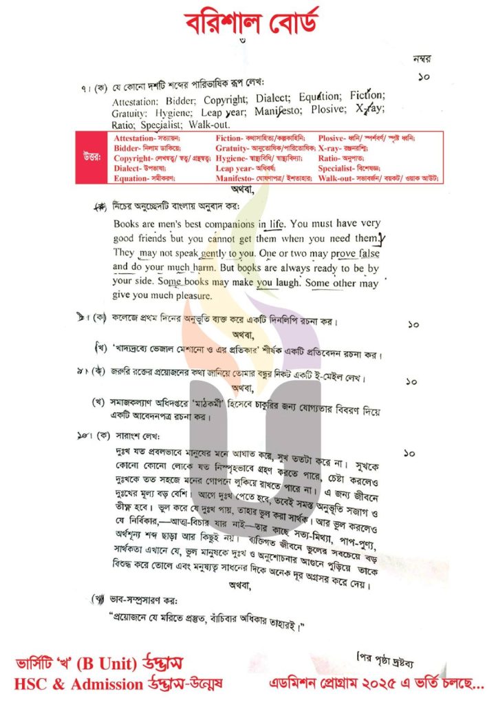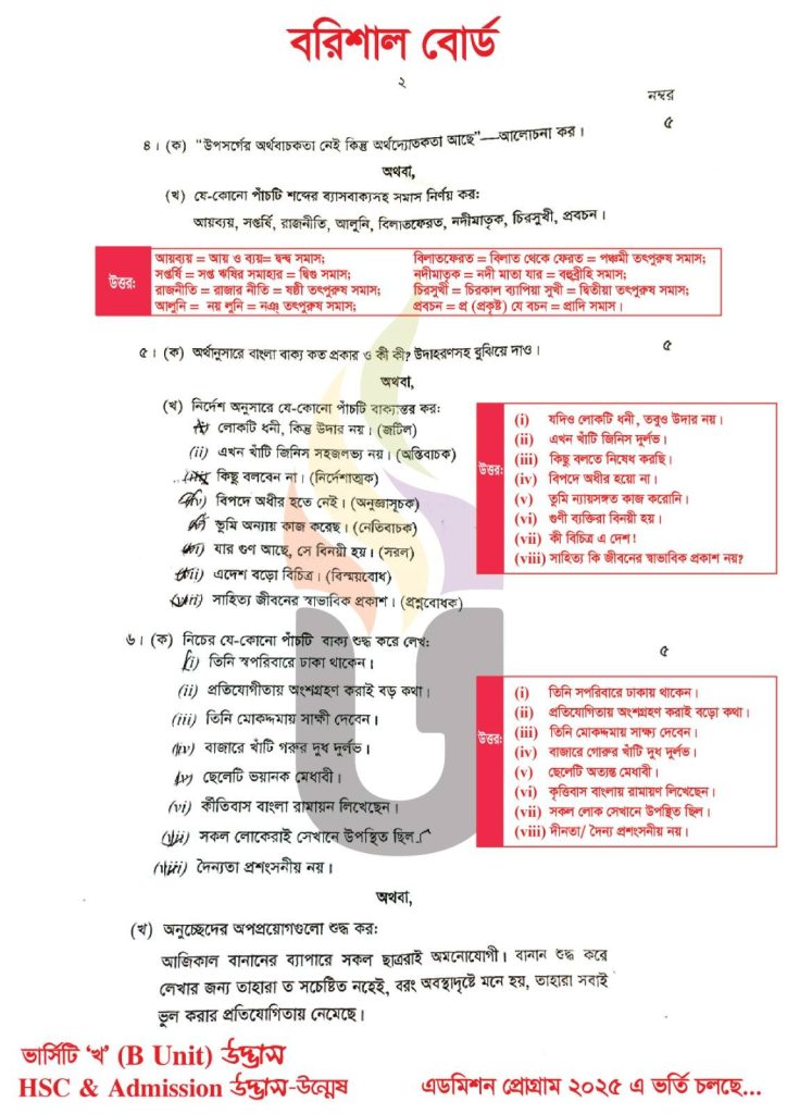 ৭. বরিশাল বোর্ড বাংলা ২য় পত্র উত্তর ২০২৫ | Bangla 2nd Paper Answer 2025 Barishal Board
