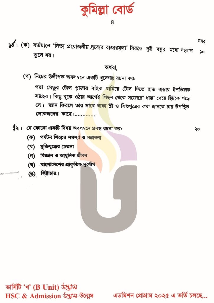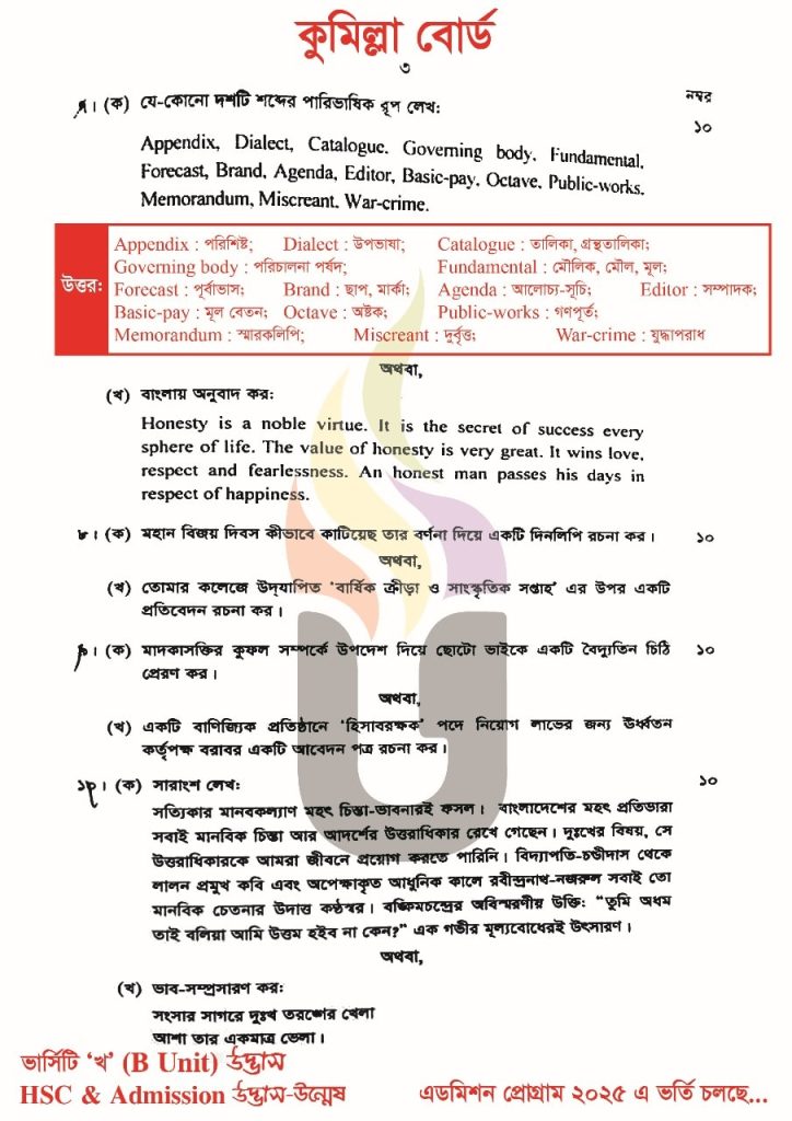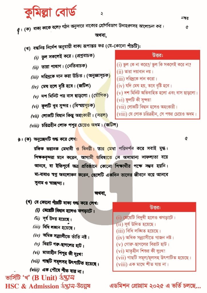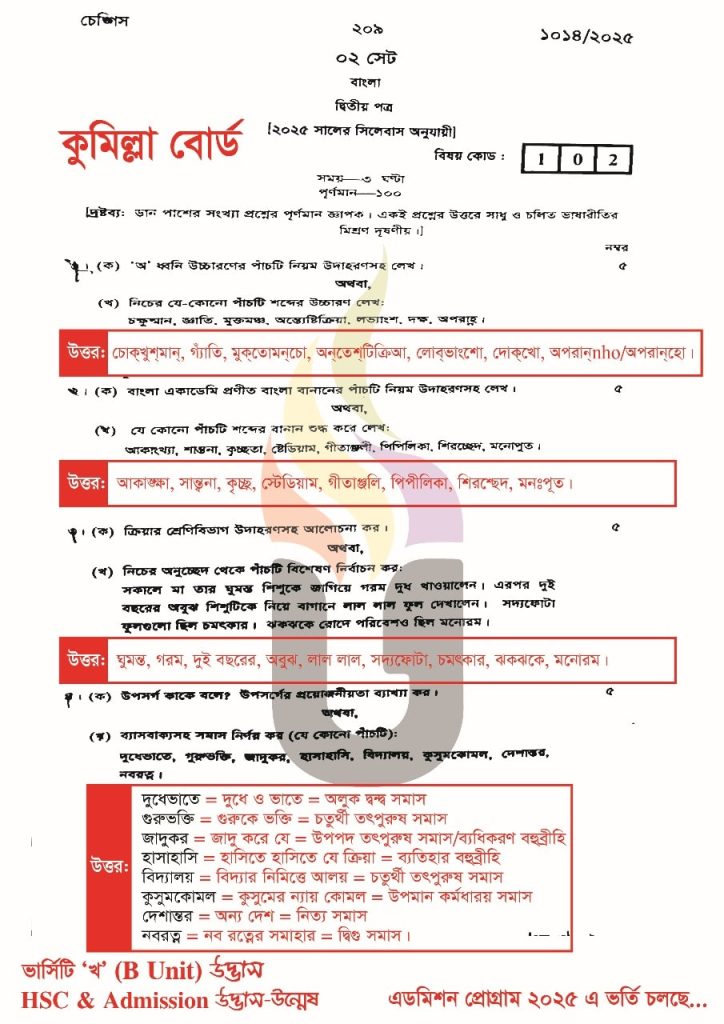 ৩. কুমিল্লা বোর্ড বাংলা ২য় পত্র উত্তর ২০২৫ | 2025 HSC Bangla 2nd Paper Answer Cumilla Board