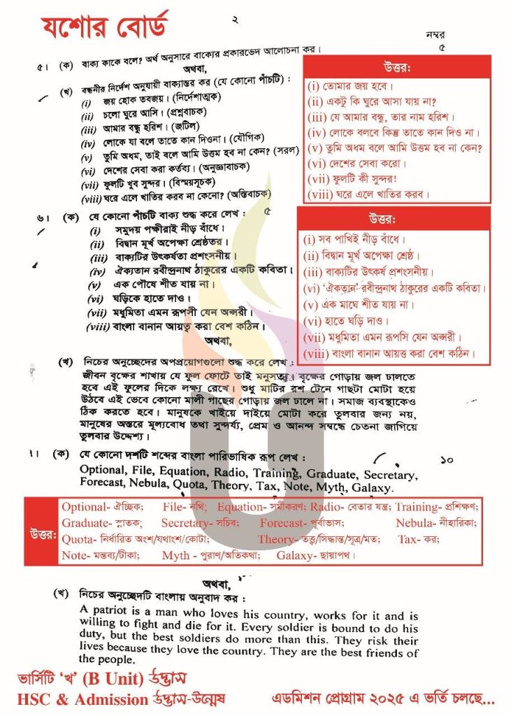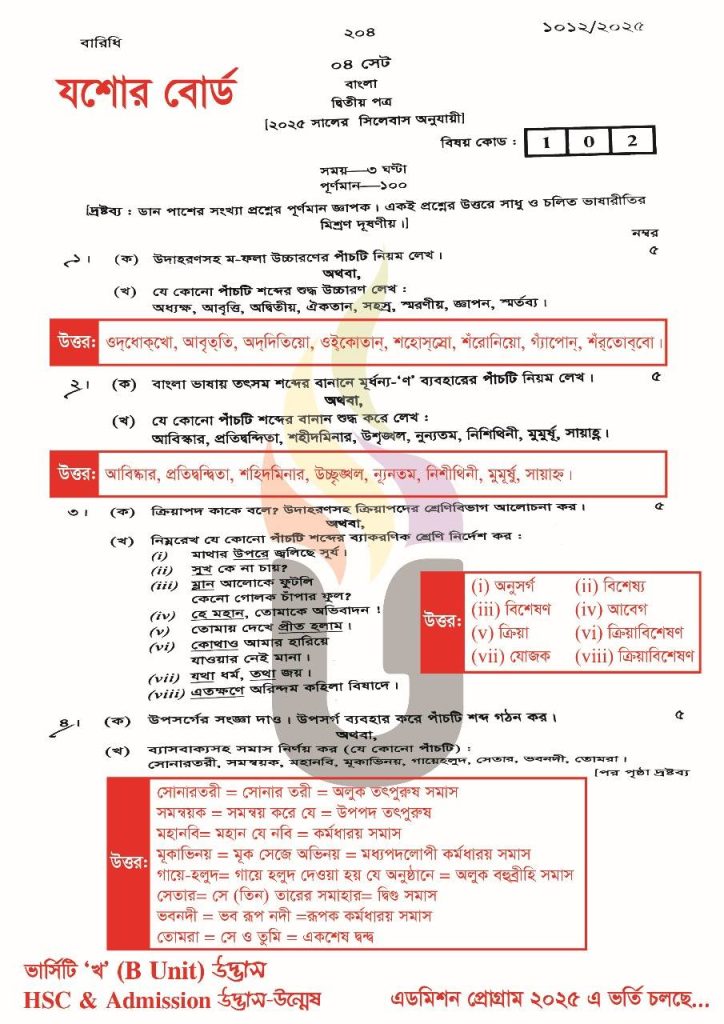 ৪. যশোর বোর্ড বাংলা ২য় পত্র উত্তর ২০২৫ | 2025 HSC Bangla 2nd Paper Answer Jessore Board