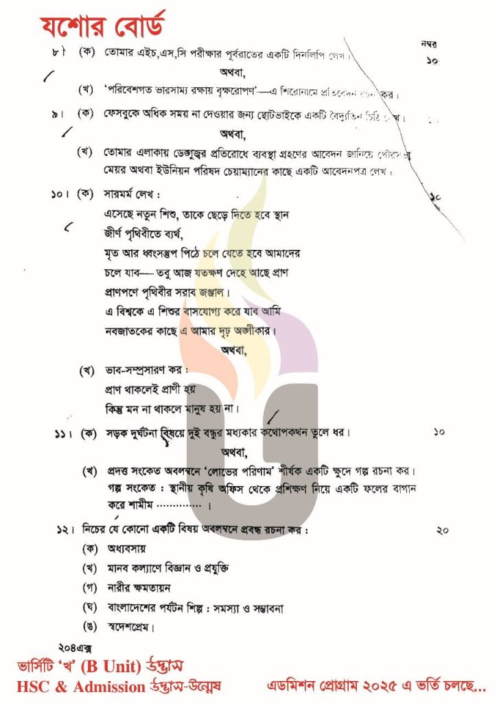 যশোর বোর্ডের পরীক্ষার্থীরা, এইচএসসি বাংলা ২য় পত্র যশোর বোর্ডের উত্তর ২০২৫ এখন আপনার জন্য! পরীক্ষা কেমন হয়েছে, কতগুলো উত্তর সঠিক হয়েছে, তা দ্রুত মিলিয়ে নিন