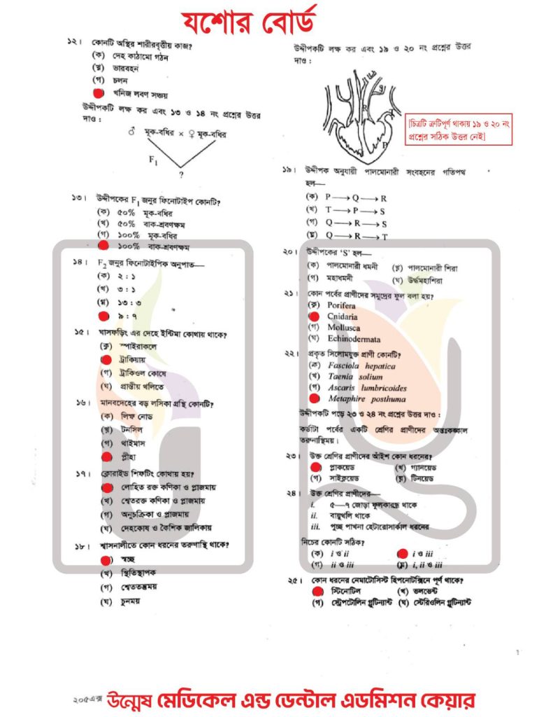 Jessore Board 2025 HSC Biology 2nd Paper Solution